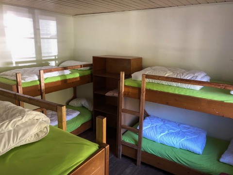 Einfach ausgestattet, ohne TV, aber mit fliesend warm Wasser auf jedem Zimmer und Duschen im Keller.